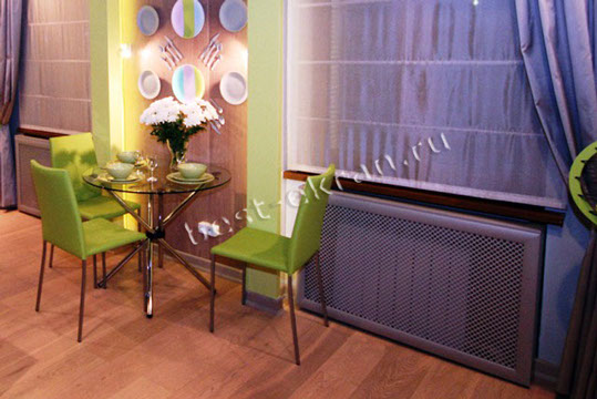 Экраны из металла красиво декорируют батарею, специальная краска не выцветает.